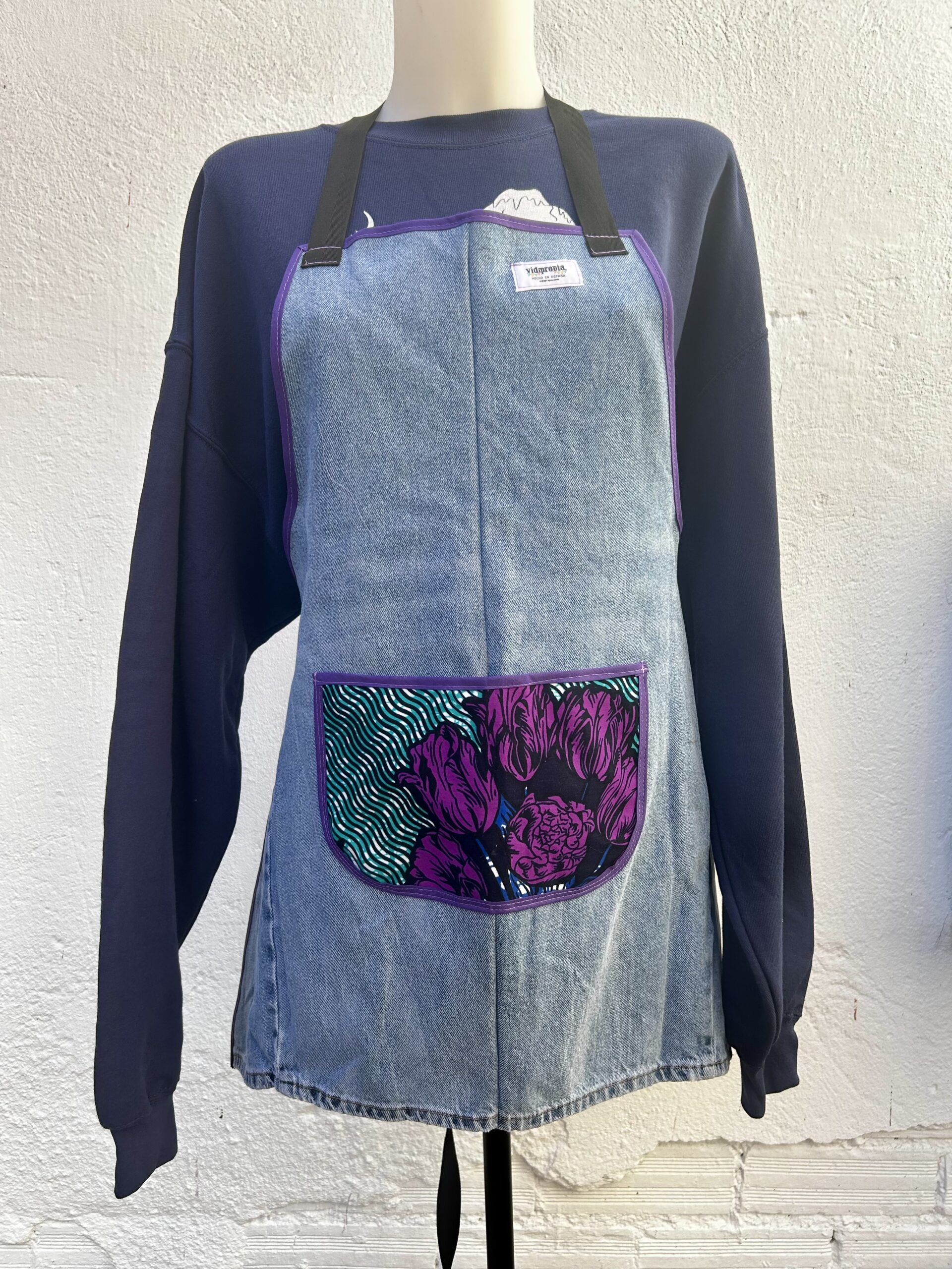 Hechos completamente a mano con amor, nuestros delantales están confeccionados a partir de vaquero recuperado y combinados con telas que les dan un toque especial y poco estándar.