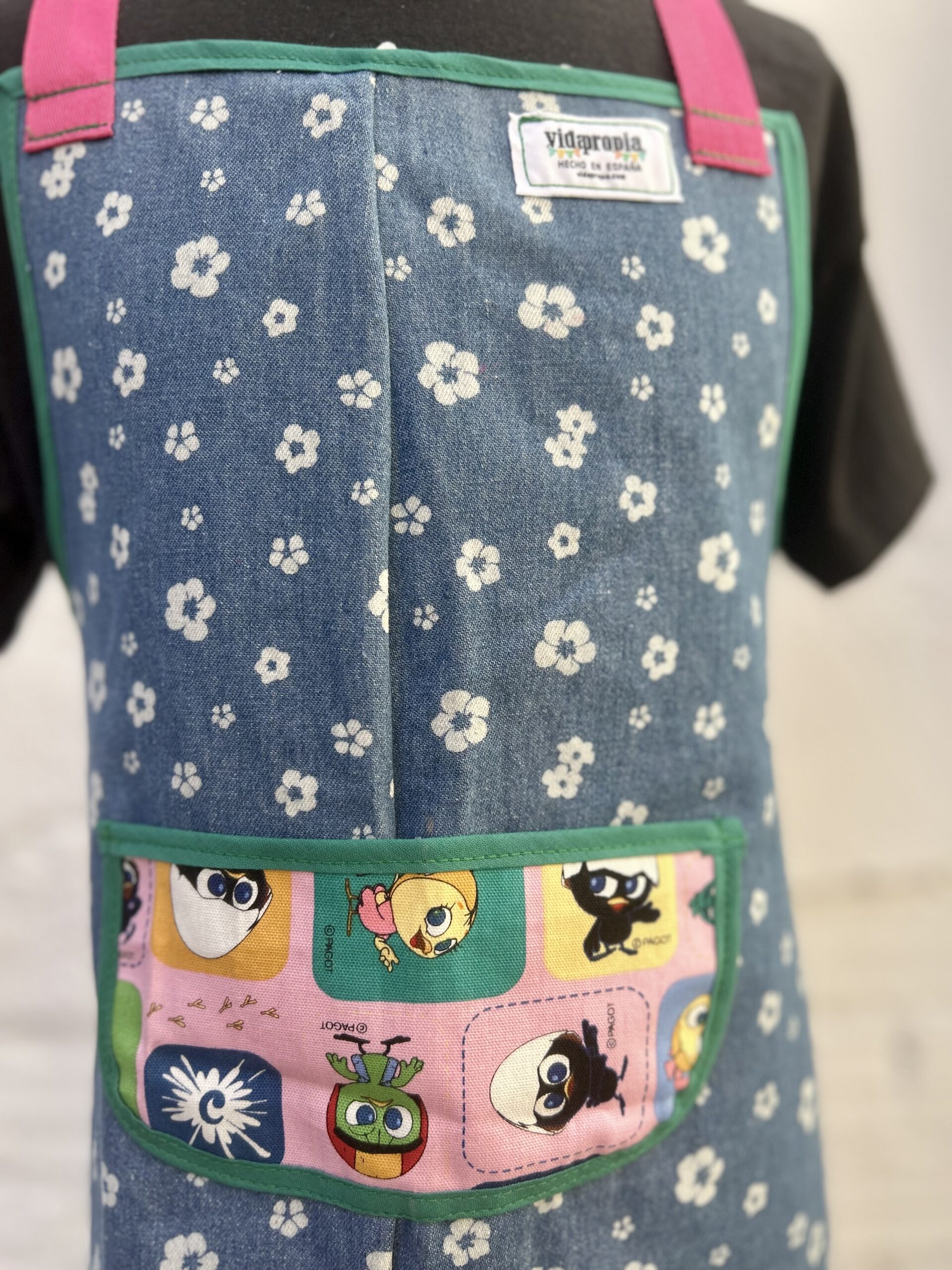 Hechos completamente a mano con amor, nuestros delantales están confeccionados a partir de vaquero recuperado y combinados con telas que les dan un toque especial y poco estándar.